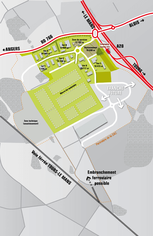 - Possibilité d’embranchement ferroviaire sur la voie TOURS – LE MANS
