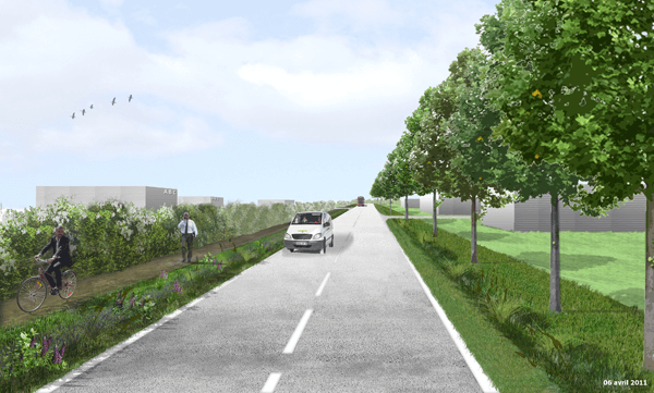- Préservation et mise en valeur du patrimoine naturel existant (bois…) et création d’un paysage de qualité avec valorisation des espaces publics (nombreux espaces verts, prairies fleuries, accompagnement paysager de la RD 766…)